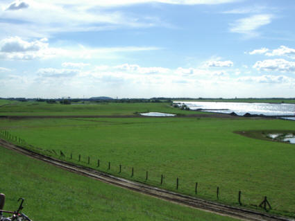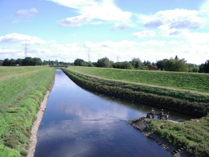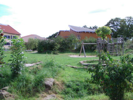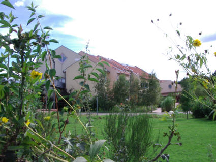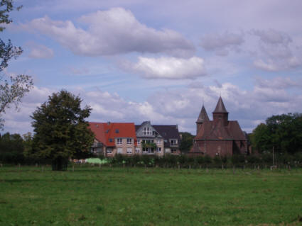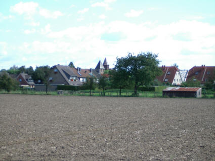 Blick vom Scholtenhof auf das CentrE und die Kirche St. Johannes
