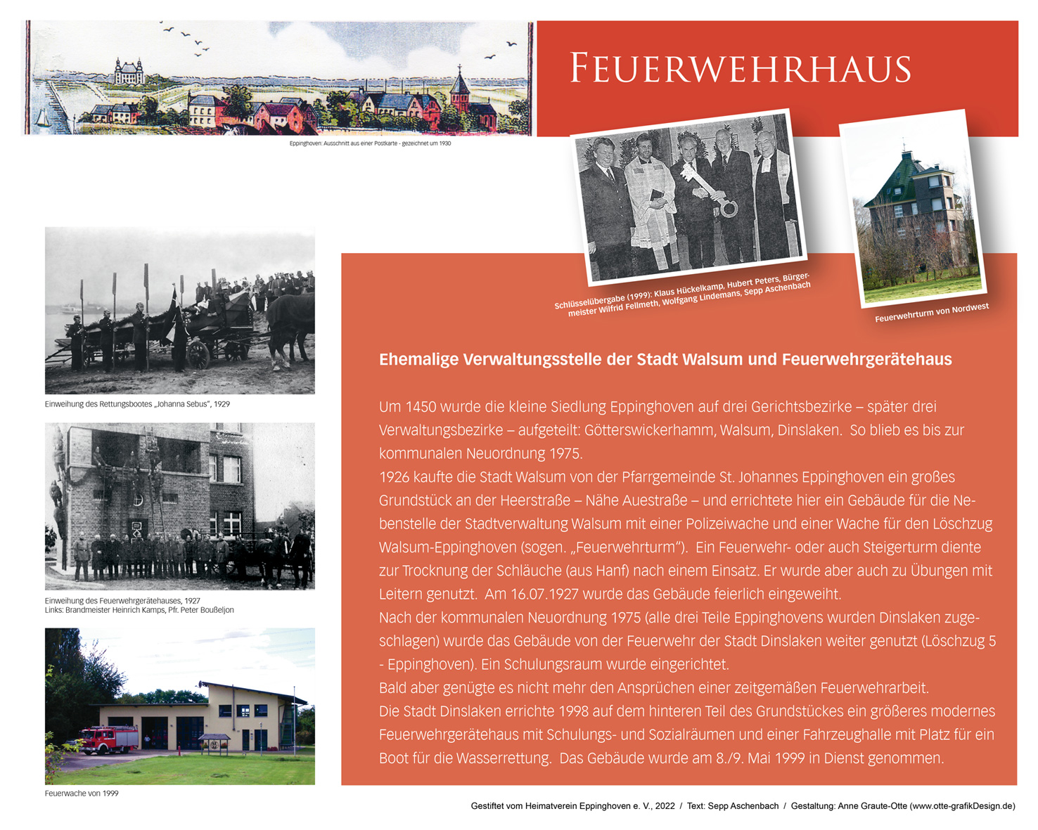 Der Heimatverein Eppinghoven hat in den letzten Jahren an verschiedenen Stellen Schautafeln mit geschichtlichen Hinweisen aufgestellt. Begonnen wurde mit einer kleinen Tafel aus Metall